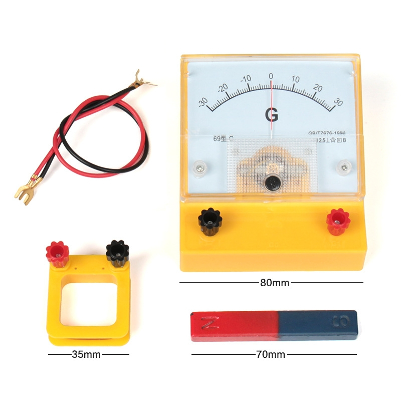 1. Ampe kế nhạy: 80mm 2. Thanh nam châm: 70mm 3. Cuộn dây có jack cắm: 35mm 4. Dây điện nối Dùng thí nghiệm môn Vật lí