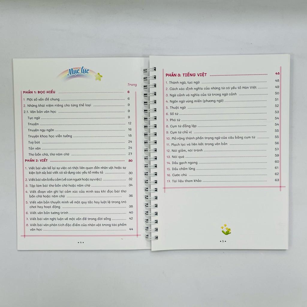Nội dung được tổ chức theo ba phần chính gồm Đọc hiểu, Viết và Tiếng Việt. Các kiến thức được trình bày ngắn gọn dưới dạng sơ đồ, bảng biểu và khái niệm trọng tâm, giúp học sinh nắm bắt nhanh những đặc điểm quan trọng của từng thể loại văn bản cũng như các kiểu bài viết trong chương trình.