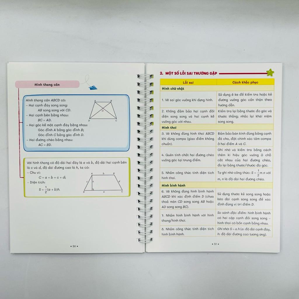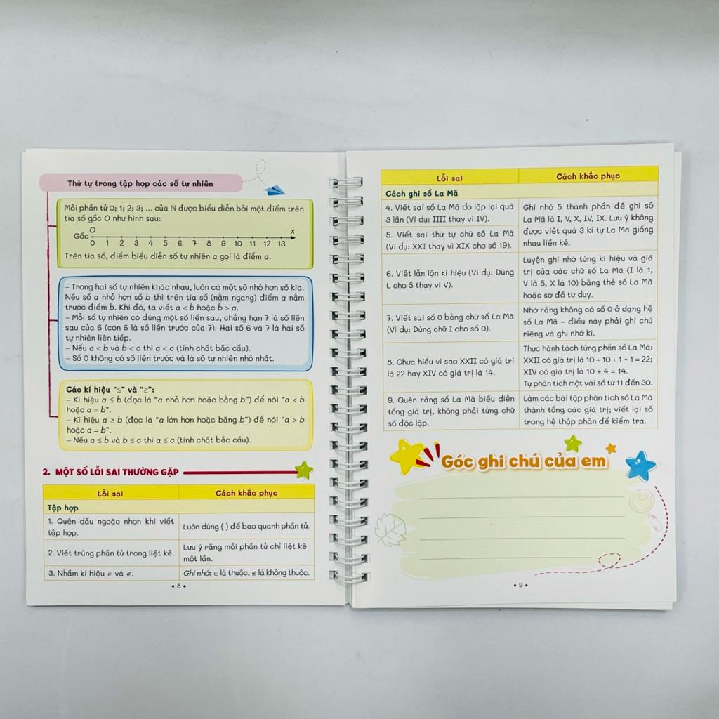 Các kiến thức trọng tâm được hệ thống hóa một cách trực quan bằng bảng biểu và sơ đồ, giúp học sinh dễ hiểu, dễ nhớ và dễ vận dụng trong quá trình học tập. Mỗi chủ đề đều gồm hai phần chính: phần tóm tắt kiến thức cơ bản và phần tổng hợp những lỗi sai thường gặp kèm cách khắc phục, từ đó giúp học sinh tự kiểm tra và củng cố kiến thức hiệu quả.