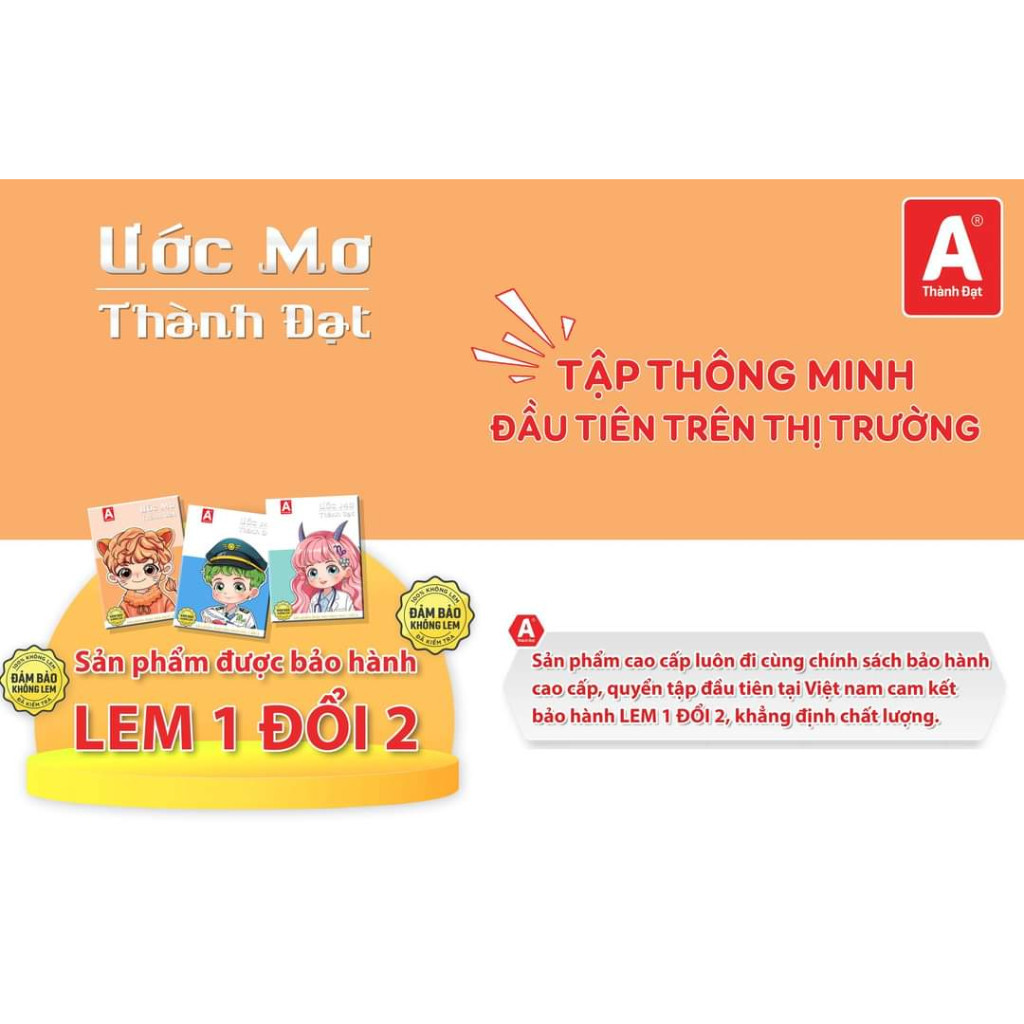 Tập Học Sinh Thông Minh 100% Không Lem - 5 Ô Ly 96 Trang 120gsm - Thành Đạt - ƯỚC MƠ (Mẫu Màu Giao Ngẫu Nhiên)